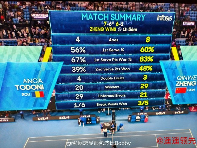 比赛中,首盘,中国金花就以Ace球开场,发球优势非常明显,开元棋牌下载一发得分率高达87%。虽然错失发球胜盘局,但也凭借Ace球化解了3个盘点,最终通过抢七,以7-6(3)先下一城。第二盘,郑钦文更是状态火热,以6-1再胜一盘,大比分2-0取得开门红。整场比赛用时1小时56分钟。